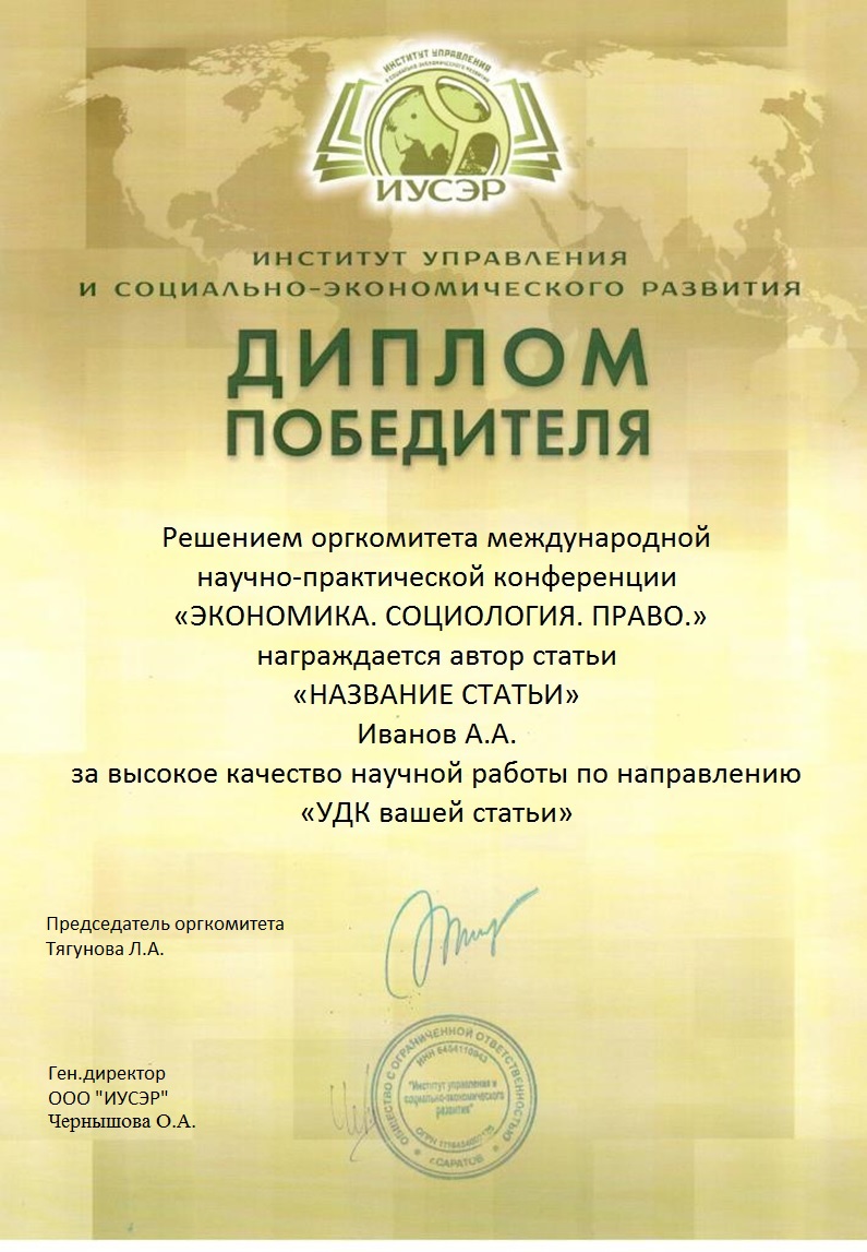 Диплом, стоимостью 200 рублей в электронном виде ОБРАЗЕЦ